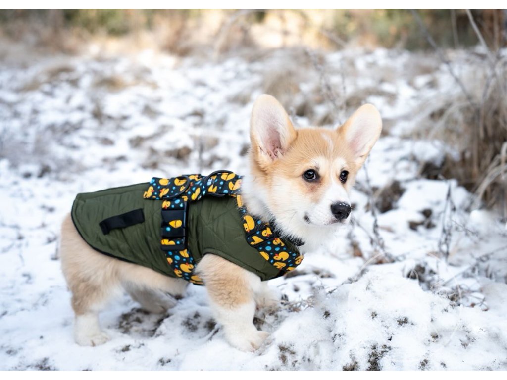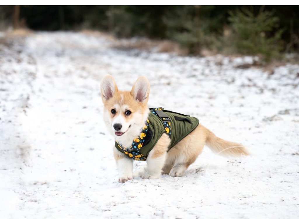 ucho k přidržení psa, prsní kroužek, poutko na tractiv či GPS a reflexní prvky nejsou součástí. Možno dokoupit zvlášť.
