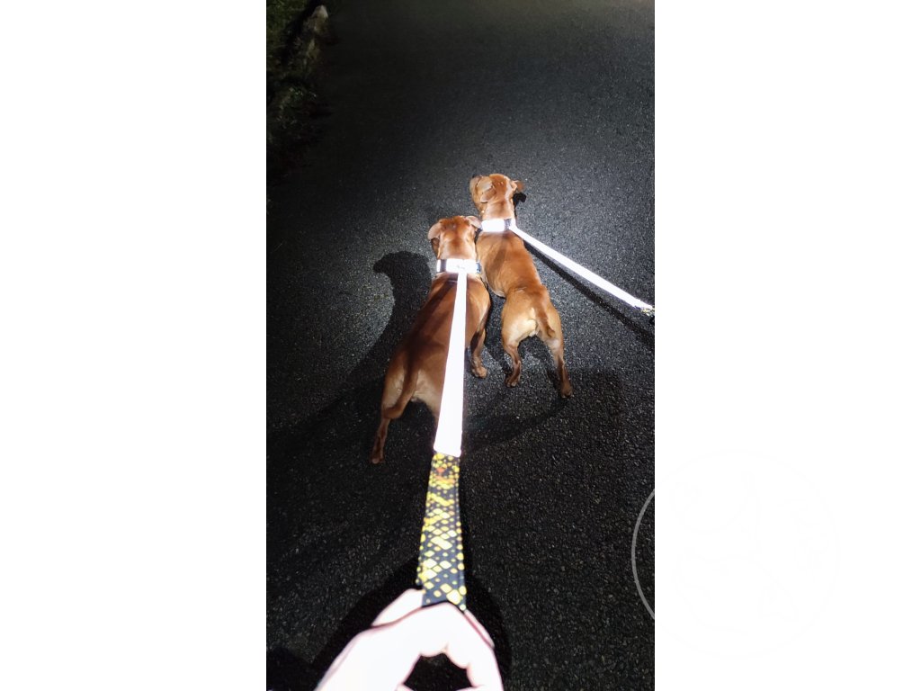 Doplnění k reflexnímu obojku - díky vodítku je vidět i páníček - jsme spokojení. Děkujeme